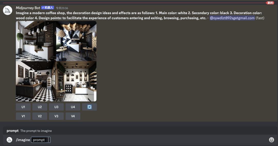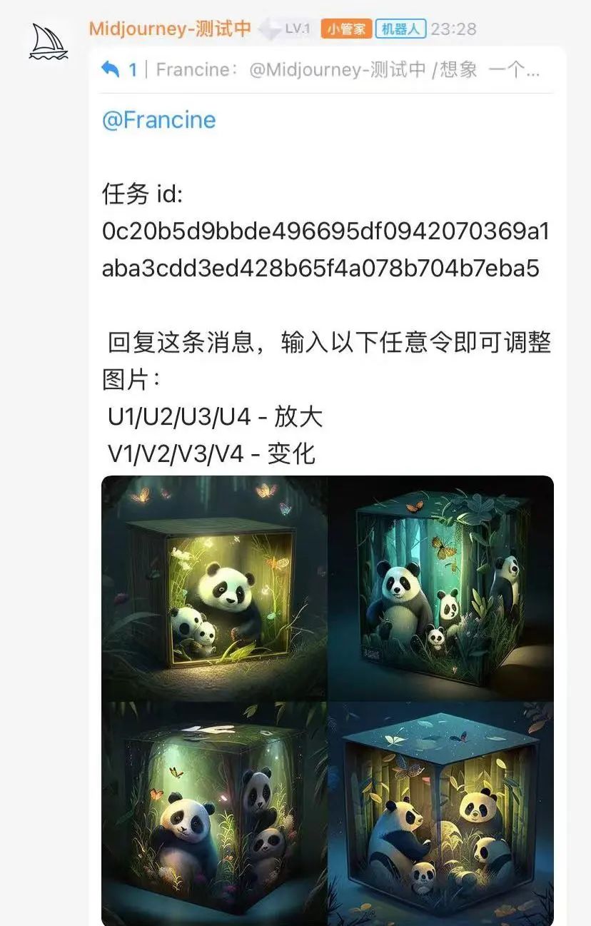 第二步,按照推荐的关键词填充内容来输入到midjourney中,生成对应的图片。